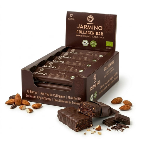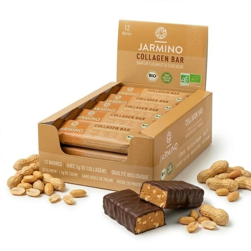 Notre nouvelle barre au collagène bio est bien plus qu'un simple en-cas. Elle fournit de précieuses protéines et du collagène et sert de source d'énergie pauvre en sucre et riche en fibres. Elle est parfaite entre les repas ou pendant le sport.